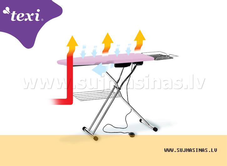 Saliekamais gludināmais dēlis ar hroma pārklājumu, apsildi un tvaika atsūkšanas funkciju.